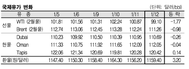 1월12일 0.26달러 떨어져 … WTI 1.77달러에 Brent 0.98달러 하락