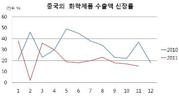 2011년 8월 이후 에틸렌(Ethylene) 생산량은 3개월 연속으로 감소했고, 합섬원료는 봄을 정점으로 약세로 돌아서 호전 요소를 찾아볼 수 없는 상황이다. 봄까지 거래가 많았던 태양전지 소재도 유럽의 경기침체의 영향으로 약세를 나타내고 있다. ![]() 중국 화학제품 시장은 2011년 상반기까지 내수 호조로 거래량이 증가했으나 금융긴축정책에 따라 5월부터 수요처들이 구입량을 줄이는 사례가 급증하기 시작했다. 중국 정부는 인플레이션 억제를 위해 2010년 11월 월 2회를 시작으로 2011년 6월까지 매월 지급준비율 0.5% 인상했다. 이에 따라 금융기관의 융자가 감소하면서 중소기업 뿐만 아니라 대기업 활동에도 영향을 미쳤다. 소비자물가지수가 하락하고 있는 가운데 중국 인민은행은 12월5일 거의 3년 만에 지급준비율 인하를 단행했다. 2012년 말까지 지급준비율 인상 횟수가 축소될 것이라는 견해가 압도적이나 긴축금융 완화가 경제에 얼마나 도움이 될지 예측하기 힘들다는 것이 공통된 의견이다. 중국은 수출액 신장률도 유럽과 미국 경제침체에 따라 4월 이후 둔화되고 있으며 11월까지 3개월 연속 부진했다. 인건비와 위안화 등 종합적인 코스트도 상승하고 있어 2012년에도 유럽, 미국 수출은 호전되기 힘들 것으로 에상된다. 중국경제 성장에 그림자가 드리운 가운데 화학제품 시장도 2012년 상반기까지 정체가 불가피해지고 있다. 표, 그래프: <중국의 화학제품 수출액 신장률 > <화학저널 2012/01/13> |