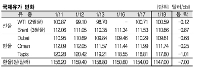 1월18일 0.68달러 하락 … WTI 0.12달러에 Brent 0.87달러 떨어져