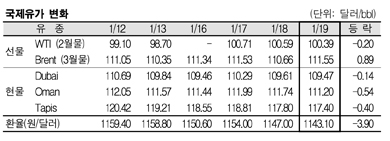 1월19일 0.14달러 떨어져 … WTI 0.20달러 하락에 Brent 0.89달러 상승