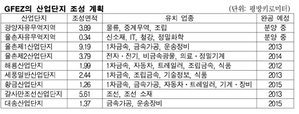 표, 그래프: < GFEZ의 산업단지 조성 계획 > <화학저널 2012/02/06> |