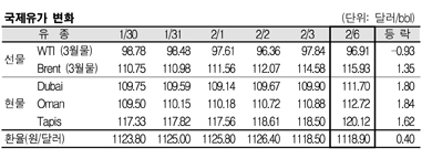 2월6일 1.80달러 올라 … WTI 0.93달러 하락에 Brent 1.35달러 상승