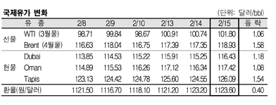 2월15일 1.18달러 급등 … WTI 1.06달러에 Brent 1.58달러 올라