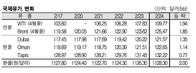 2월24일 1.35달러 올라 … WTI 1.94달러에 Brent 1.85달러 상승