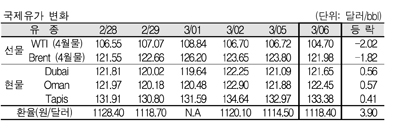 3월5일 0.56달러 상승 … WTIㆍ브렌트유는 2달러 안팎 하락