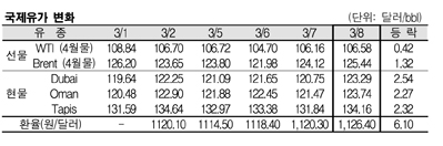 3월8일 2.54달러 올라 … WTI 0.42달러에 Bent 1.32달러 상승