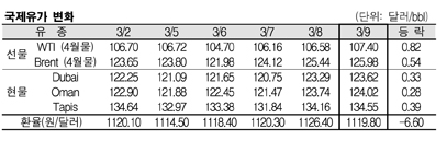3월9일 0.33달러 상승 … WTI 106.58달러에 Brent 125.98달러
