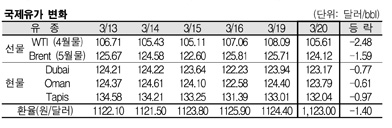3월20일 WTI 2.48달러에 브렌트 1.59달러 하락 … 두바이도 약세
