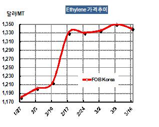 CFR NE Asia 1290달러로 10달러 떨어져 … 다운스트림도 약세 전환