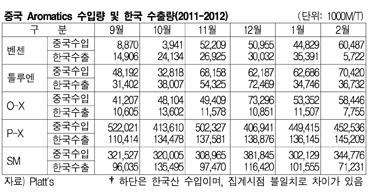 2월 벤젠 수입 35% 증가 … 한국 수출량 84% 급감해 대책 시급