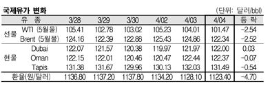 4월4일 WTI 101.47달러로 떨어져 … 브렌트유도 120달러 붕괴 직전