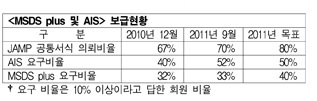 JAMP이 중소기업에 대한 화학물질 정보 유통관리 시스템의 보급을 가속화할 방침이다. 표, 그래프: <MSDS plus 및 AIS> 보급현황 <화학저널 2012/04/06> |