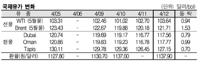 4월12일 0.79달러 상승에 그쳐 … WTIㆍ브렌트유는 연속 상승