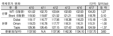 4월17일 115.18달러로 1.05달러 하락 … 브렌트유는 약상승 그쳐