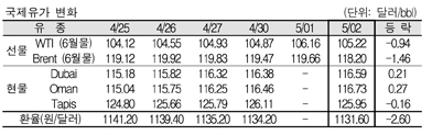 5월2일 116.59달러로 0.21달러 상승 … WTIㆍ브렌트유는 하락세 전환