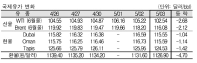 5월3일 115.55달러로 1.04달러 하락 … WTIㆍ브렌트유는 폭락세