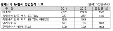 독일계 특수화학기업 랑세스(Lanxess)는 2012년 1/4분기 특별손익을 제외한 EBITDA가 전년동기대비 15% 늘어나 3억6900만유로(약 5500억원)에 달했다고 5월14일 발표했다. 또 “2012년의 순조로운 시작은 랑세스가 성장세를 이어가기 위한 발판이 마련되었음을 알려준다”며 “랑세스는 불안정한 경제적 요소들이 아직도 자리하고 있음을 인지하고 있으며 대응 가능한 물량 대비 가격우선 정책(Price-before-Volume)을 고수할 계획”이라고 밝혔다. 표, 그래프: < 랑세스의 1/4분기 영업실적 비교 > <화학저널 2012/05/14> |