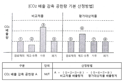 표, 그래프: < CO2 배출 감축 공헌량 기본 산정방법 > <화학저널 2012/06/22> |