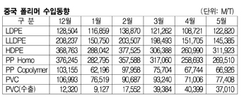 5월 HDPE 수입 20% 증가 … LLDPE 및 PP Copolymer는 감소