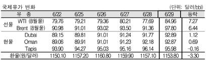 6월29일 WTIㆍ브렌트유 6-7달러 올라 … 두바이유도 93달러 육박