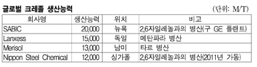 2012년 크레졸(o-Cresol) 세계수요가 5만톤 대로 떨어질지 모른다는 견해가 이어지고 있다. TV와 가전의 수요 감소 영향으로 반도체 봉지재용 수요가 부진해 적층판용이 스마트폰의 활약으로 고군분투하며 수요를 견인하고 있다. 표, 그래프: < P-X 가격추이 > <화학저널 2012/08/07> |