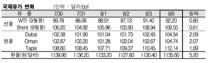 8월6일 104.54달러로 2.09달러 급등 … WTIㆍ브렌트유도 상승 지속