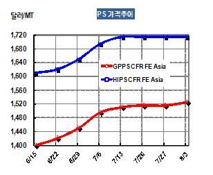 CFR China 1525달러로 10달러 상승 … HIPSㆍEPS는 보합세