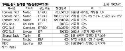 Formosa No.1-2-3 가동률 100% … 중국은 일시적 타이트 심화
