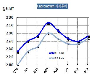 아시아 CPL 가격은 8월17일 CFR FE Asia 톤당 2280달러로 20달러 상승했다. 중국 내수가격은 90일 신용거래 기준 ex-tank 톤당 1만8300위안으로 수입가격 기준 2260달러를 형성해 8월 첫째주와 동일한 수준을 나타냈다. <화학저널 2012/08/23> |