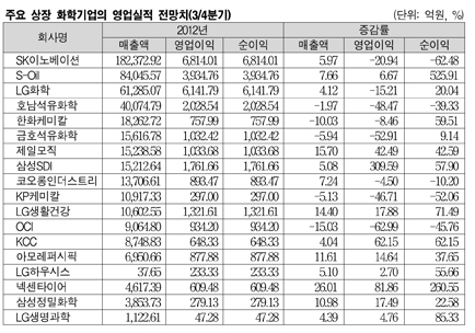 3/4분기 영업이익 48.5% 감소 전망 … 금호ㆍKPㆍOCI도 급전직하