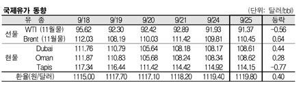 9월25일 108.61달러로 0.44달러 올라 … WTI는 하락 지속