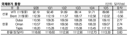 10월5일 109.10달러로 2.77달러 급등 … WTIㆍ브렌트는 하락