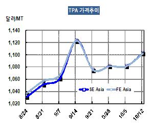 표, 그래프: < TPA 가격추이 > <화학저널 2012/10/16> |