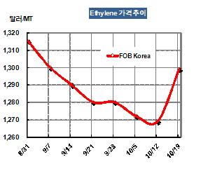 FOB Korea 1299달러로 30달러 상승 … 일본 크래커 가동률 하락으로
