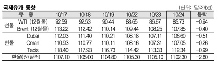 10월24일 106.60달러로 0.51달러 떨어져 … WTIㆍ브렌트도 약세장