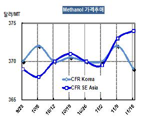 표, 그래프: < Methanol 가격추이 > <화학저널 2012/11/23> |