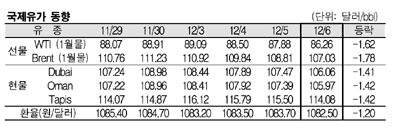 12월6일 국제유가는 유로존 경제성장률 전망치 하향조정으로 석유수요 위축 우려가 제기돼 하락했다.