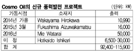 일본 Cosmo Oil이 풍력발전 사업을 본격적으로 정비한다. 표, 그래프: < Cosmo Oil의 신규 풍력발전 프로젝트 > <화학저널 2012/12/13> |
