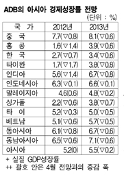 ADB, 7.3%에서 1.0%포인트 낮춰 … 중국ㆍ인디아 경제침체 영향으로