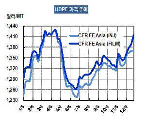 2012년 HDPE(High-Density Polyethylene) 가격은 톤당 1380달러에 육박하며 거래를 마감했다.