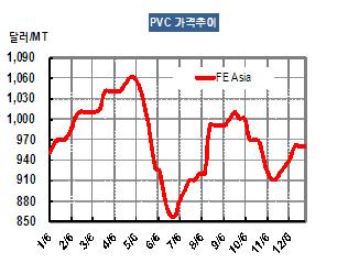 아시아 PVC 시세는 수요가 증가하고 있는 가운데 생산기업들이 공급물량을 줄이면서 상승세로 전환돼 2월 1000달러를 돌파하며 상승하기 시작했다.