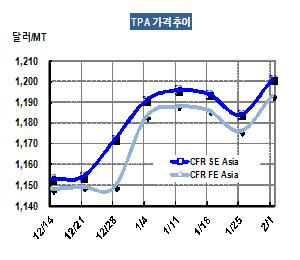표, 그래프: < TPA 가격추이 > <화학저널 2013/02/07> |