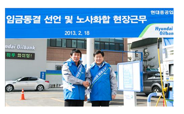 현대오일뱅크(대표 권오갑) 노사가 2013년 대기업 가운데 처음으로 임금동결을 선언했다.