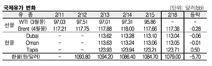 2월18일 113.04달러로 0.06달러 하락 … 브렌트유는 117.38달러