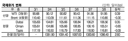표, 그래프: < 국제유가 변화 > <화학저널 2013/03/11> |