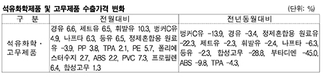 표, 그래프: < 석유화학제품 및 고무제품 수출가격 변화 > <화학저널 2013/03/13> |