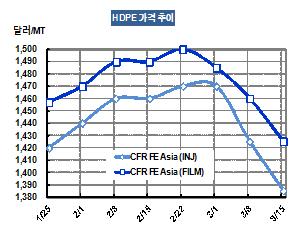 [석유화학] HDPE, 동북아 약세 속 보합세… | 2025-09-15 | ||