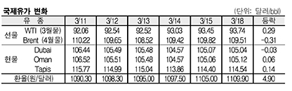 3월18일 국제유가는 중동지역의 공급차질 우려, 미국의 경기지표 개선 등으로 상승했다.