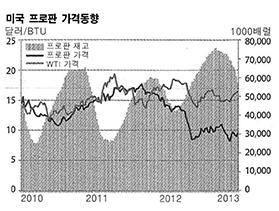 갤런당 86.2센트로 원유의 60% 수준 … 세일가스 확대로 공급과잉