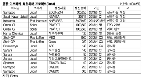 표, 그래프: < 중동-아프리카 석유화학 프로젝트(2013) > <화학저널 2013/03/22> |